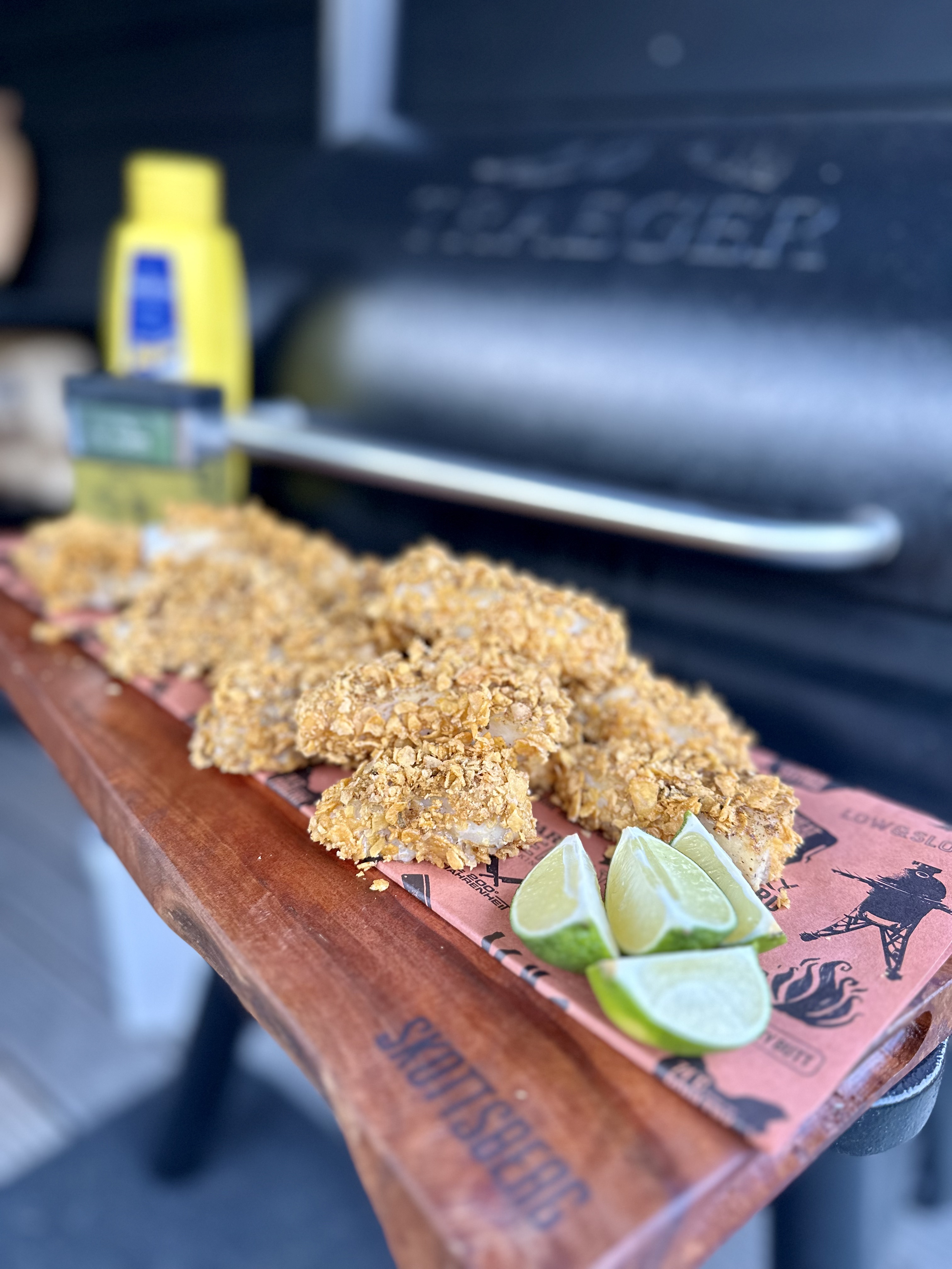 Haal de kibbeling van de Traeger Grill zodra deze perfect gaar en knapperig is. Serveer het met bijgerechten zoals remouladesaus, Joppiesaus of knoflooksaus. Een partje limoen of citroen kan worden toegevoegd voor een frisse touch.